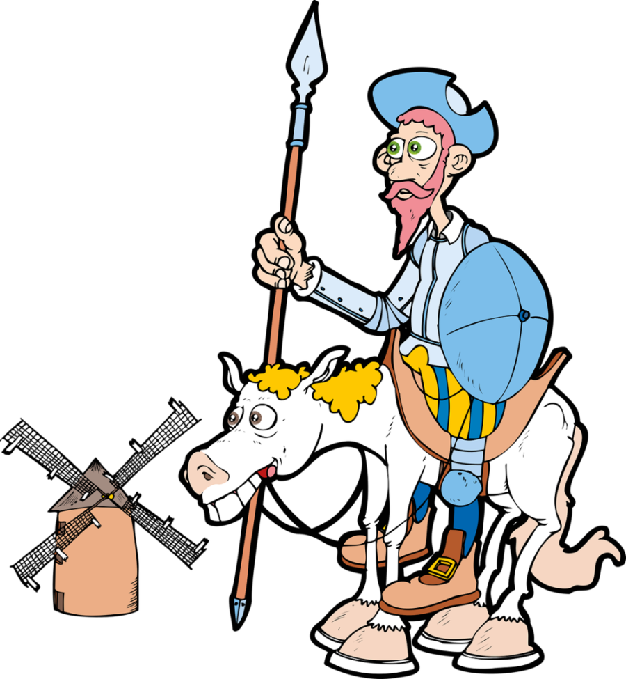 In dem tragisch-komischen Roman kämpft der Held Don Quijote gegen Windmühlen, weil er sie für feindliche Riesen hält. Daraus ist die Redewendung „gegen Windmühlen kämpfen“ entstanden, die verwendet wird, um etwas zu beschreiben, das niemals zum Erfolg führen wird.